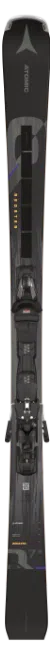 Schwarzer Atomic-Ski mit Bindung und goldenem Logo von oben gesehen.